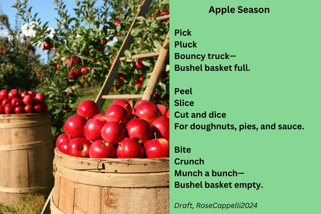 My copies have not arrived yet but I am excited that they are on their way. Your apple season poem reminds me of our trip to the orchard with the little grandgirls. They were so excited to pick apples with the long device. I love the sound words you used in the poem.