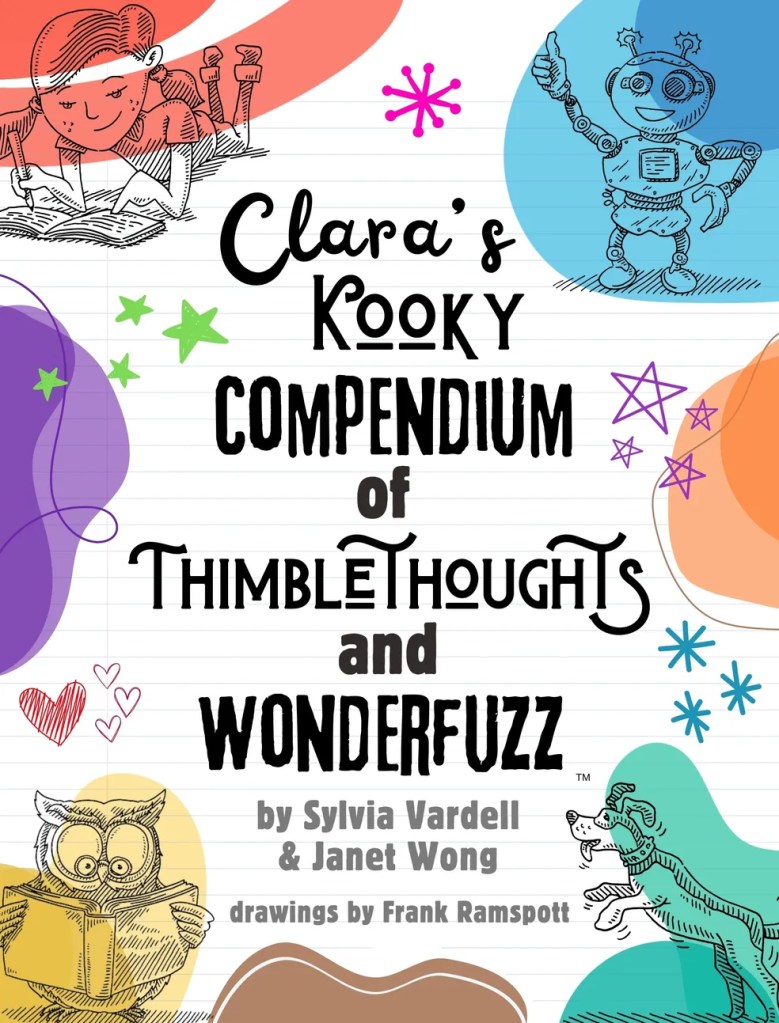 Today I’m celebrating a wonderful new anthology from Sylvia Vardell and Janet Wong, Clara’s Kooky Compendium of Thimblethoughts and Wonderfuzz with drawings by Frank Ramspott.