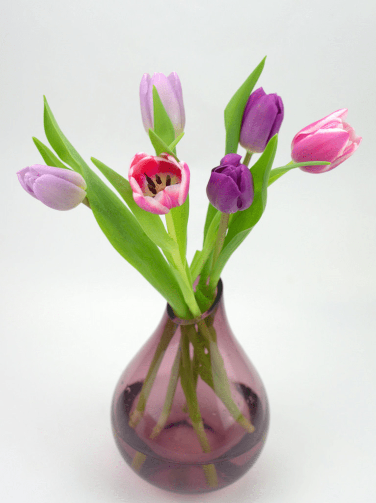 Beautiful. Tulips bring so much cheer to a room, a corner of a grocery store or any poem. Yes to purple stamps of approval. Yes to some spring tulips with my dinner—please and thank you!