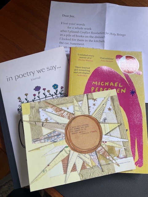 This summer I was treated to some very special poetry swap gifts. Thank you to Carol Labuzzetta and Linda Mitchell for your thoughtful, personal and beautiful packages that brightened my day and will continue to do so. I’m always amazed at the generosity and creativity of this writing community. Thank you all for being part of my world.